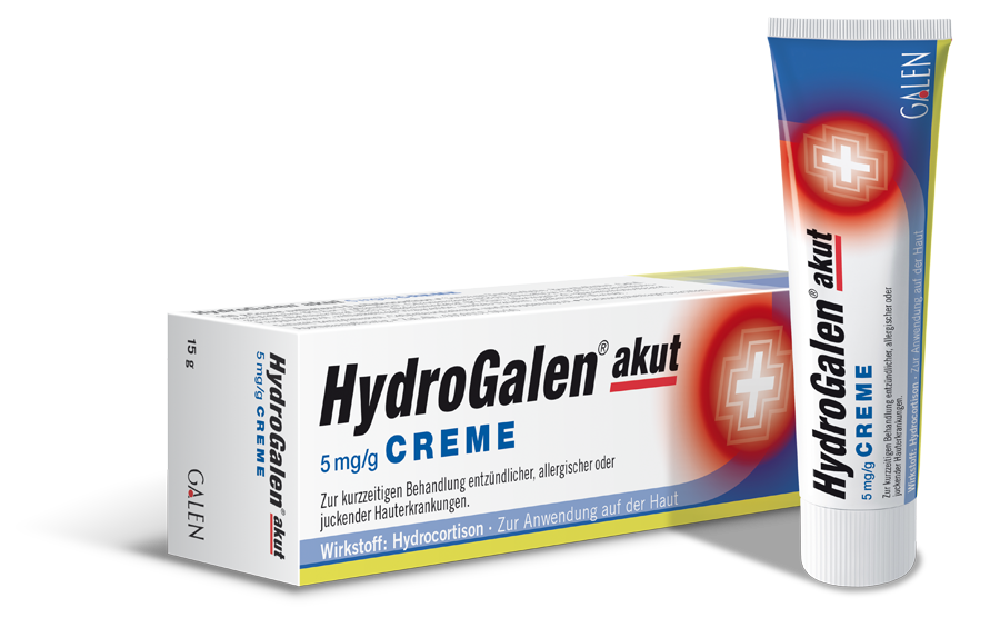 HydroGalen® akut 5 mg/g ist eine entzündungshemmende Creme zur Anwendung auf der Haut. Sie wird angewendet zur kurzzeitigen (maximal 2 Wochen) Anwendung zur Behandlung von entzündlichen, allergischen oder juckenden Hauterkrankungen mit mäßiger Ausprägung, die auf eine äußerliche Therapie mit schwach wirksamen Kortikosteroiden ansprechen. Für Erwachsene und Kinder ab dem vollendeten 6. Lebensjahr.